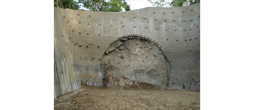 Se trata de la construcción de una pantalla anclada para la estabilización del talud que queda expuesto a deslizamientos producto del avance del corte del terreno, realizados para la apertura del portal de túnel.
